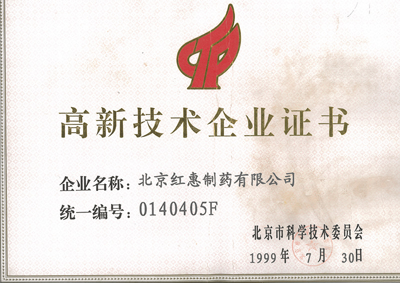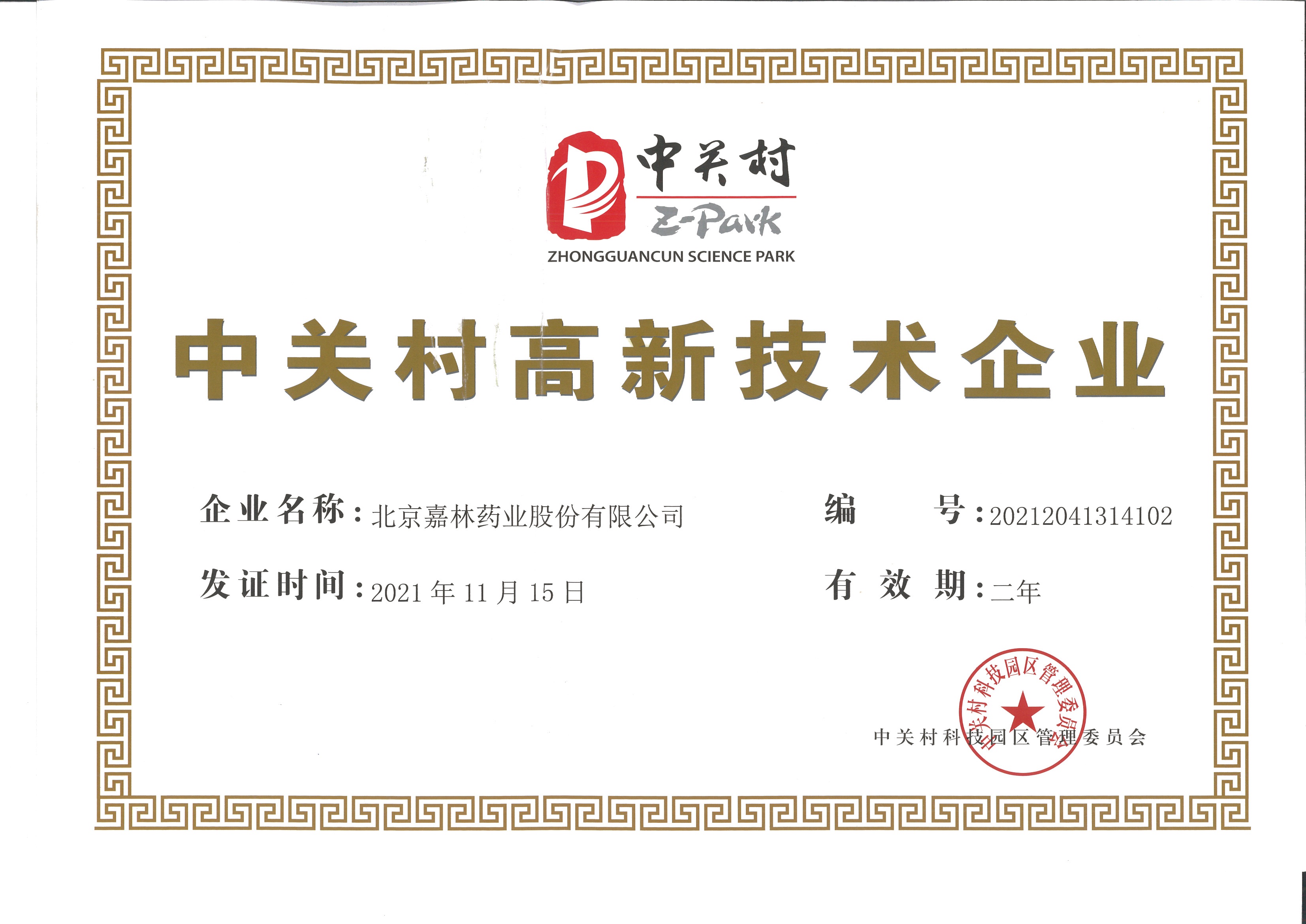 • 中關(guān)村科技園區(qū)高新技術(shù)企業(yè)證書