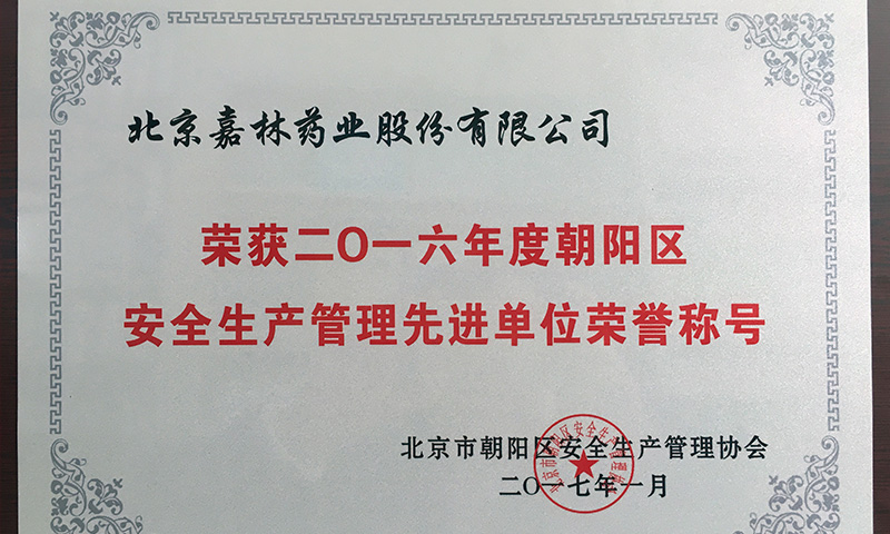 • 2016年度朝陽區(qū)安全生產(chǎn)管理先進單位榮譽稱號
