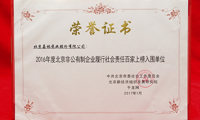 • 2016年度北京非公有制企業(yè)履行社會責任百家上榜入圍單位