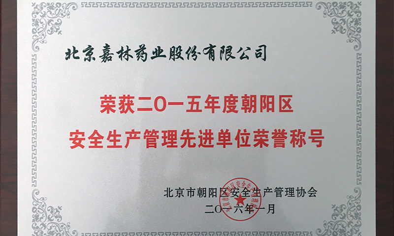 • 2015年度“朝陽區(qū)安全生產(chǎn)管理先進單位榮譽稱號”