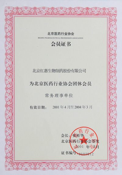 • 北京市醫(yī)藥行業(yè)協(xié)會“副會長單位”。