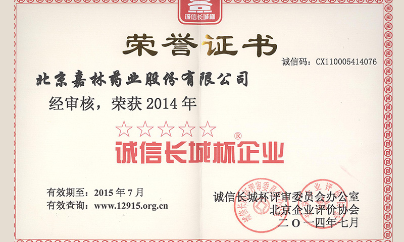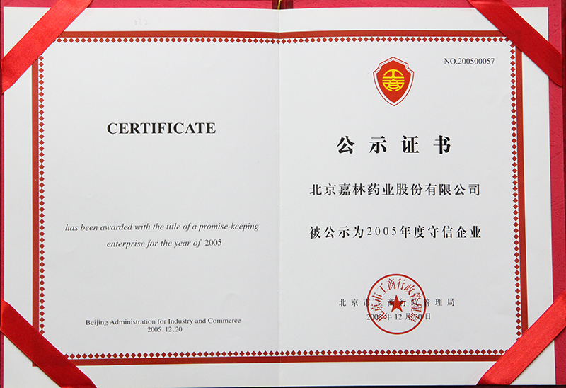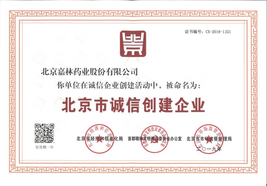 • 公司被命為“北京市誠信創(chuàng)建企業(yè)”