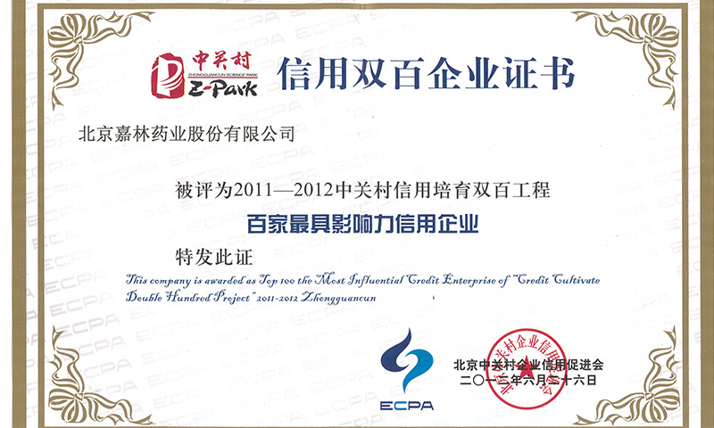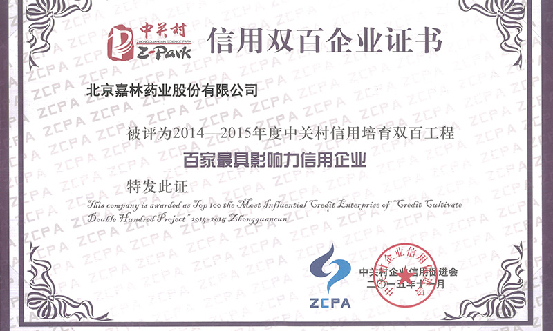 • 2014-2015年度“百家最具影響力信用企業(yè)”