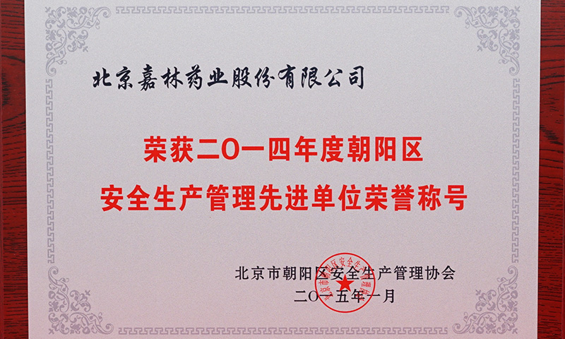 • 2014年度“朝陽區(qū)安全生產(chǎn)管理先進單位榮譽稱號”