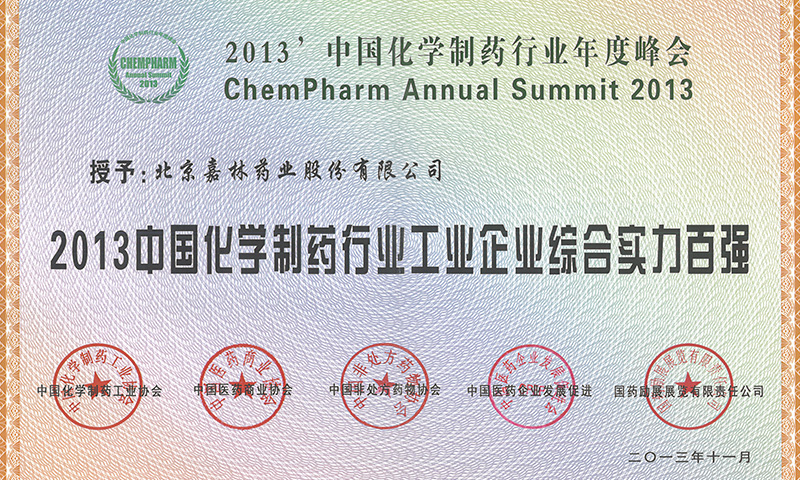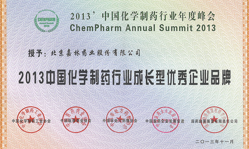 • 2013中國化學制藥行業(yè)成長型優(yōu)秀企業(yè)品牌