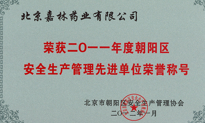 • 2011年度“朝陽區(qū)安全生產(chǎn)管理先進單位榮譽稱號”