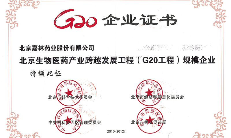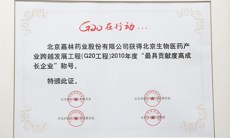 • G20工程2010年度最具貢獻度高成長企業(yè)稱號