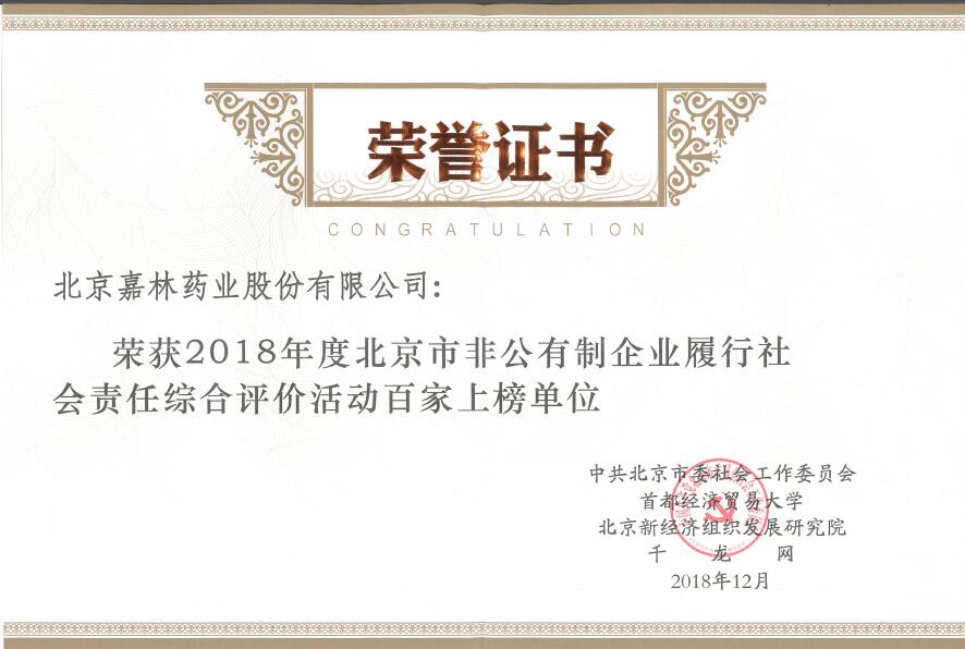 • 2018年度北京非公有制企業(yè)履行社會責任百家上榜企業(yè)