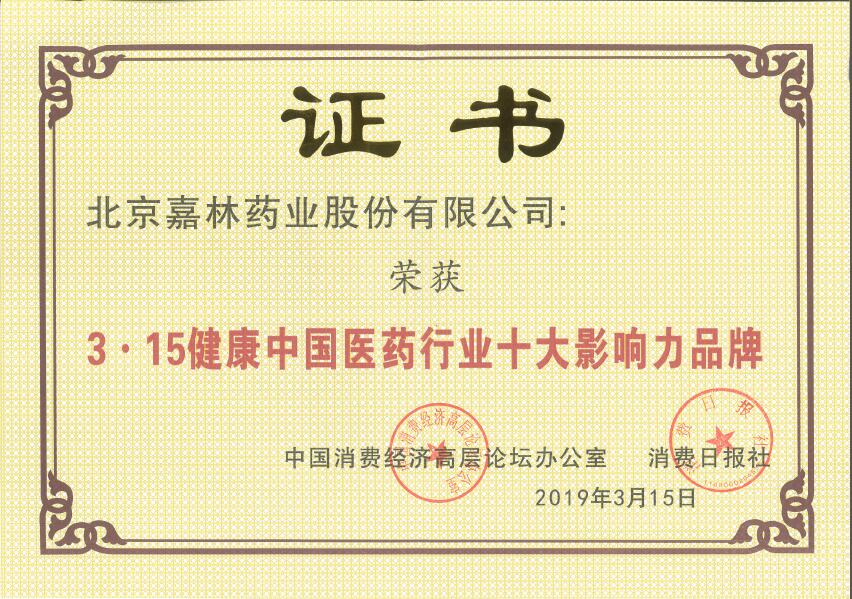 • 公司榮獲3?15健康中國醫(yī)藥行業(yè)十大影響力品牌獎