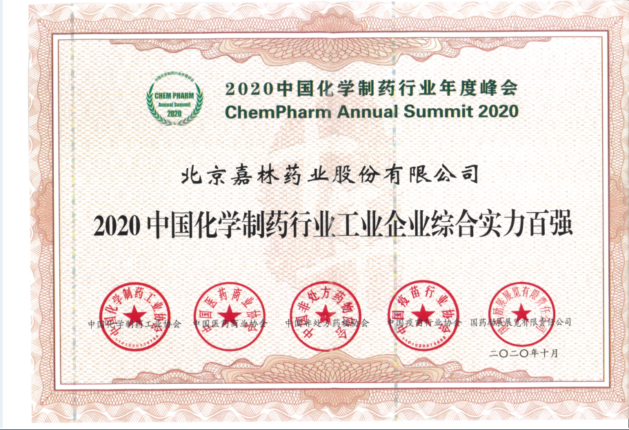 • 北京嘉林藥業(yè)榮膺“新中國成立70周年醫(yī)藥產(chǎn)業(yè)標桿企業(yè)”