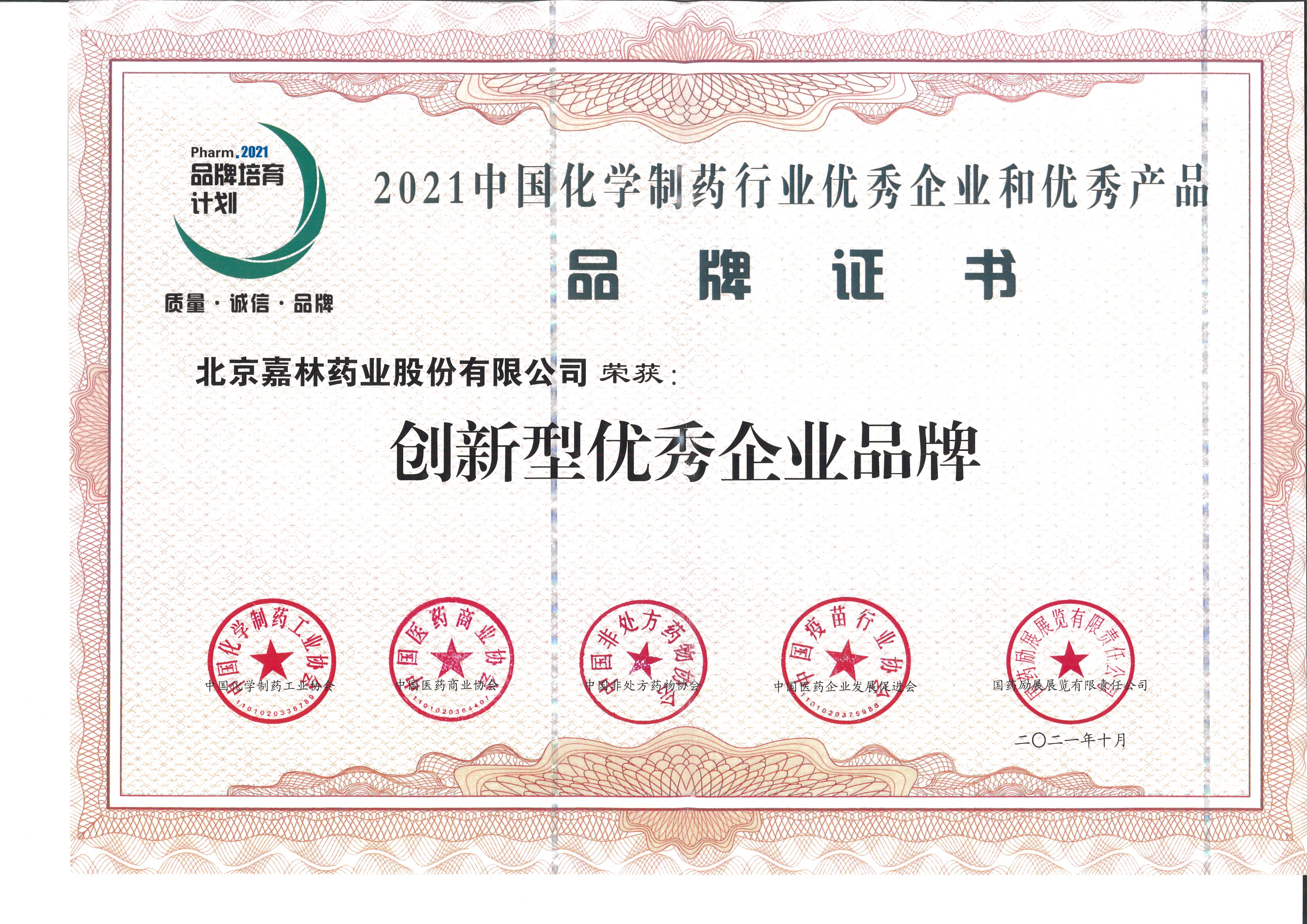 • 公司榮獲2021年中國化學制藥行業(yè)創(chuàng)新型優(yōu)秀企業(yè)品牌