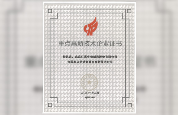 公司被認(rèn)定為國家火炬計(jì)劃重點(diǎn)高新技術(shù)企業(yè)。