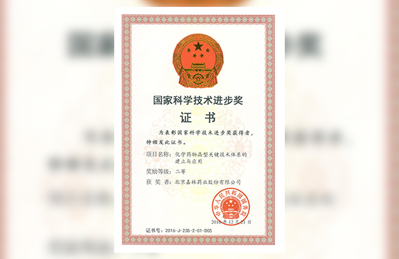 北京嘉林藥業(yè)“化學(xué)藥物晶型關(guān)鍵技術(shù)體系的建立與應(yīng)用” 項(xiàng)目獲國家科學(xué)技術(shù)進(jìn)步二等獎。